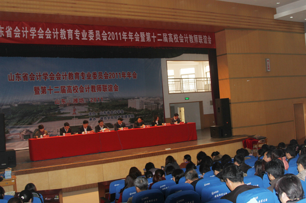 本站讯:11月26日至11月27日,由山东省会计学会主办,我校承办的山东省会计学会会计教育专业委员会2011年年会暨山东省第三届会计学院院长、系主任论坛在我校召开。副院长王清明出席开幕式,并代表学校对大会的召开表示祝贺。山东省财政厅会计处副处长王永振,山东会计学会会计教育专业委员会会长、山东财经大学副校长綦好东教授出席大会并致辞。