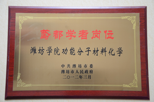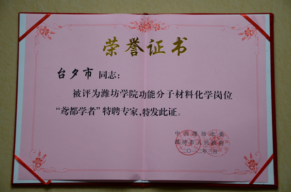 本站讯 :4月28日,潍坊市科技创新暨人才工作会议在富华国际会议中心举行。会上,公布了16名潍坊市第二期“鸢都学者”特聘专家名单。我校化学化工与环境工程学院台夕市博士榜上有名。目前,我校共有“鸢都学者”特聘专家2名。据悉,“鸢都学者”建设工程是潍坊市培养高层次领军人才和优秀创新团队的重要举措,“鸢都学者”是潍坊市人才的最高荣誉。