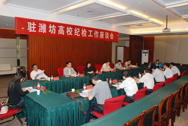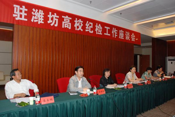 本站讯 5月22日,山东省委高校工委驻潍高校纪检工作座谈会在我校体育馆会议室召开。山东省委高校工委纪工委副书记张洪英主持座谈会并讲话,学校党委副书记牛钟顺在座谈会上致辞。省委高校工委纪工委调研员孙慧民出席会议,驻潍11所高校的纪委书记出席座谈会并作交流发言。学校纪委书记马茜华作了题为《认真贯彻上级精神,不断加强自身建设,全面抓好党风廉政建设和反腐倡廉工作》的发言。