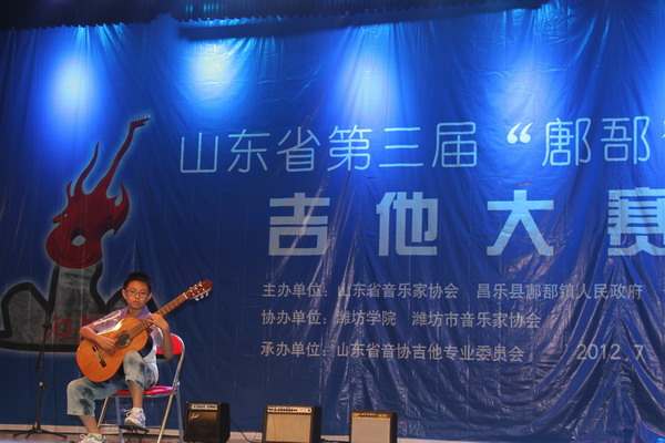 本站讯 为繁荣我省吉他音乐艺术,推动吉他音乐演奏和教学的全面发展,7月17日,由山东省音乐家协会、昌乐县鄌郚镇人民政府主办,潍坊学院、潍坊市音乐家协会协办,山东省音协吉他专业委员会承办的山东山东省第三届“鄌郚杯”吉他大赛,在潍坊学院举行。