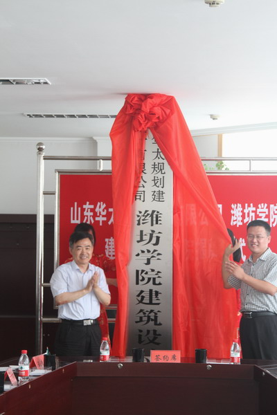 本站讯 7月18日,山东华太规划建筑设计有限公司潍坊学院建筑设计院揭牌仪式举行。院长王守伦与山东华太规划建筑设计有限公司董事长李国华共同为建筑设计院揭牌。仪式由副院长王清明主持。山东华太规划建筑设计有限公司、我校建筑工程学院负责同志参加了揭牌仪式。