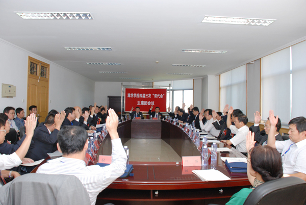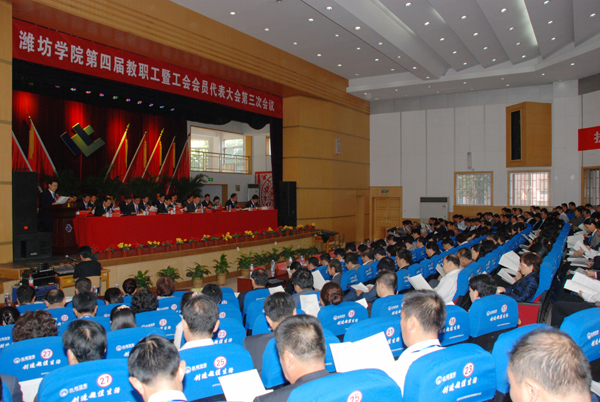 第四,坚持和完善学校“教代会”制度。本次会议审议通过了《潍坊学院教职工代表大会实施细则》,各单位、各部门和全体教职员工要认真宣传、贯彻、落实好。