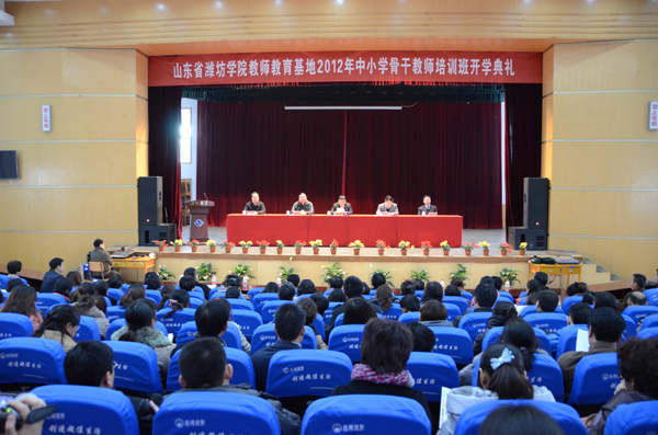 本站讯 11月26日,山东省潍坊学院教师教育基地2012年全省中小学骨干教师培训班开学典礼在我校举行。来自全省各地200余位初中体育、小学音乐、特殊教育骨干教师参加本次培训。