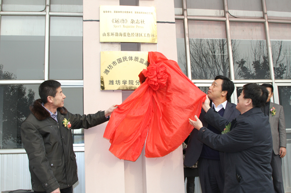 本站讯 1月7日,潍坊市国民体质检测中心潍坊学院分中心挂牌成立。副院长王清明出席揭牌仪式,并与潍坊市体育局等相关领导共同揭牌。