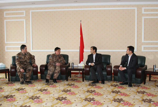 本站讯 新春佳节将至,1月22日,驻潍空军某部首长来我校走访,党委副书记牛钟顺会见了客人。座谈中,双方互致新春问候,并围绕进一步加强军地共建和其他所关心的话题进行了深入交流。