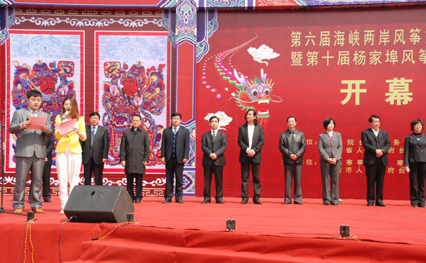 本站讯 4月21日,我校与寒亭区联合举办的潍坊百强文化创意设计大赛精品展在杨家埠民间艺术大观园开展。党委副书记牛钟顺出席展览,并出席同时举行的第六届海峡两岸风筝文化交流活动暨第十届杨家埠风筝年画艺术节开幕式。党委宣传部负责同志、我校在寒亭区挂职的干部陪同参加。