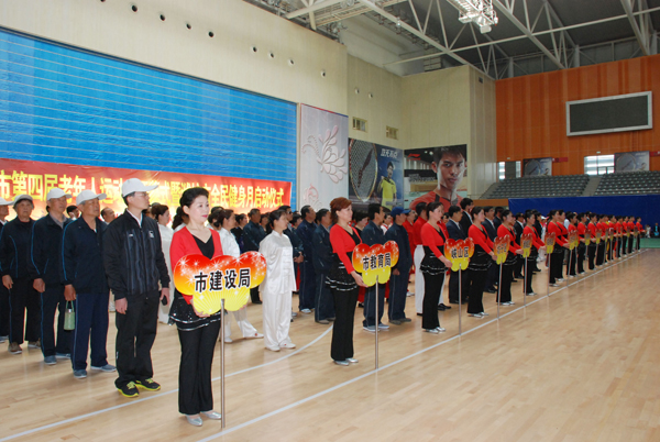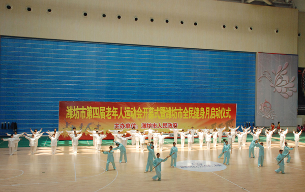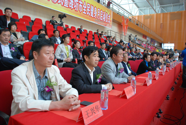 本站讯 5月10日,潍坊市第四届老年人运动会开幕式暨全民健身月启动仪式在我校体育馆举行。省市领导曹学成、王献玲、毛秀凤、王桂英、吴建民等出席开幕式。我校党委副书记牛钟顺出席活动并在主席台就座。
