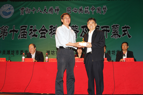 开幕式上表彰了2012年度潍坊市社会科学普及工作先进集体和先进个人、2012年度潍坊市社会科学工作先进集体和先进个人,并为获奖单位和个人颁发了证书。我校科研处、党委宣传部、经济管理学院以及张付功、尹中强、尹建民、张德升、魏晓迪获得表彰。