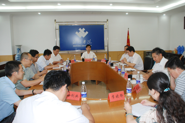 本站讯 7月2日,潍坊市人力资源和社会保障局有关负责同志来校,对连续四次获得潍坊市专业技术拔尖人才的我校教授、发展规划处处长李长明进行管理期满考察。党委副书记牛钟顺主持座谈会并介绍了李长明的情况。党委组织部、人事处、科研处、信控学院等部门的负责同志和老师参加了座谈会。