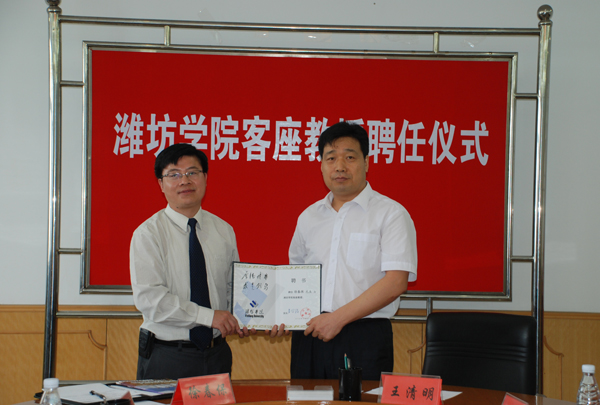 本站讯7月30日,加拿大西安大略大学华裔教授徐春保受聘为我校客座教授。副院长王清明为其颁发了聘书。