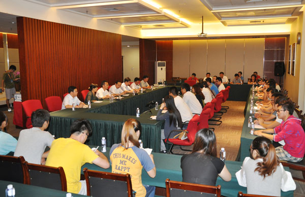 本站讯 9月16日,副院长丁子信带领总务处、保卫处、校医院等部门和有关中心负责人,在体育馆会议室召开关于后勤服务工作的学生座谈会,就后勤服务工作征求学生意见。32名来自不同院部、不同年级的学生代表参加了座谈会,学生工作部负责同志也参加了座谈会。
