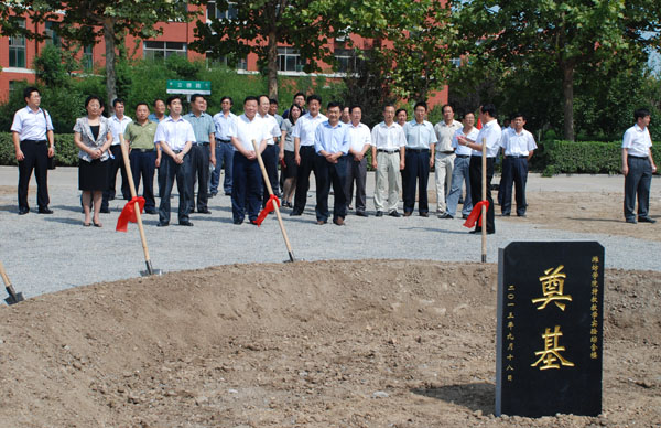 本站讯 9月18日,我校特教教学实验综合楼奠基仪式在安顺校区举行。学校领导辛丕宏、王守伦、牛钟顺、丁子信、马茜华出席仪式并共同为该综合楼培土奠基。学校有关部门负责同志,教师教育学院、幼教特教师范学院负责同志和教职工代表,工程建设方、监理方的负责同志参加了奠基仪式。