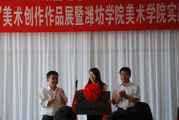 本站讯 9月25日,我校与奎文区政府共同举办的“庆十一·迎十艺”美术创作作品展暨美术学院教学实践基地揭牌仪式在奎文区美术馆举行。院长王守伦为实践基地揭牌。副院长冯滨鲁致开幕词。来自潍坊市、奎文区有关负责同志及美术学院师生参加了揭牌仪式。