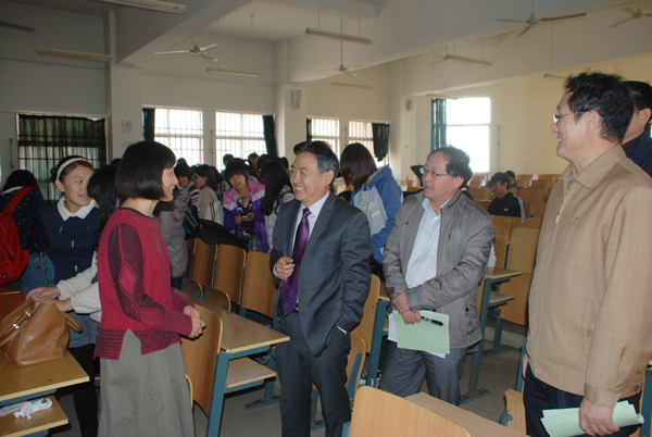 这堂课是由经济管理学院的周金娟老师讲授的。下课后,王守伦与周金娟老师进行了交流,并对其课堂上注重教学方法的创新、善于调动学生的积极性给予了很大程度上的肯定。
