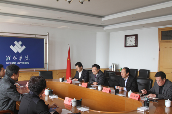 王守伦代表学校对客人的来访表示欢迎。他简要介绍了学校的发展历程和办学理念,并从教学、科研、人才队伍建设、合作办学等方面作了详细介绍。随后,陈西峰介绍了沧州师范学院的情况。