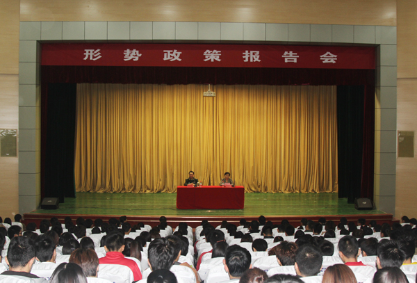 本站讯 10月29日,学校邀请潍坊军分区政治部主任李树春大校作了题为《我国周边的安全环境》形势政策报告会。报告会由纪委书记马茜华主持。