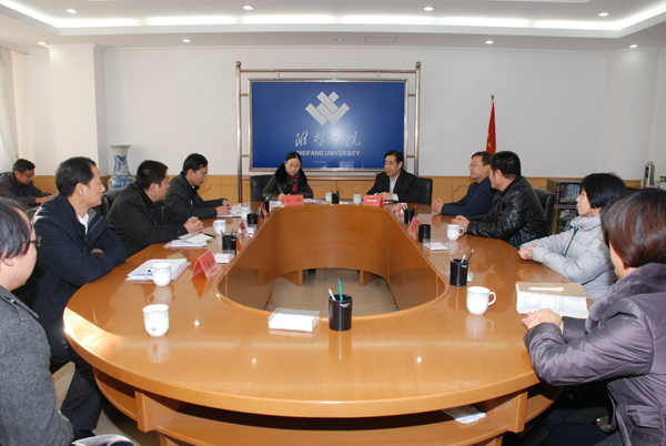 本站讯 11月28日,以潍坊市外国专家局局长刘玲为组长的市人才工作领导小组考核组一行4人,来校对第一期管理期满的“鸢都学者”岗位建设情况进行考核。党委副书记牛钟顺会见了考核组成员。考核组听取了有关负责同志的情况汇报,进行了个别谈话、问卷调查,查阅了有关资料,实地查看了实验场所,对我校的“鸢都学者”岗位建设情况给予充分肯定。