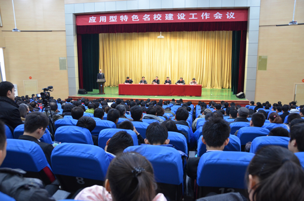本站讯 12月19日,我校应用型人才培养特色名校建设工作会议在学校图书馆隆重召开。党委书记辛丕宏发表了重要讲话。院长王守伦向大会作主题报告。会议由副院长冯滨鲁主持。7位二级学院负责人分别作了大会交流发言。学校领导牛钟顺、王清明、马茜华出席会议。