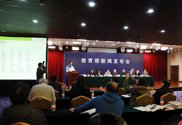 本站讯 2月27日上午,教育部新春新闻发布会(五)在北京市十一学校国际部六层报告厅召开,教育部基础教育二司副司长申继亮,北京市十一学校校长李希贵,中国青少年研究中心副主任、研究员孙云晓,21世纪教育研究院副院长熊丙奇,教育部教育发展研究中心基础教育研究室主任汪明参加发布会。发布会由教育部新闻发言人续梅主持。我校校友、北京市十一学校校长李希贵在新闻发布会上介绍了北京市十一学校教育改革的典型经验。