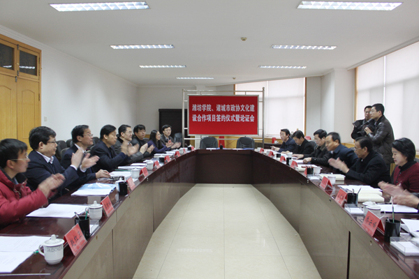 本站讯 近日,我校与诸城市政协文化建设合作项目论证会暨签约仪式举行。副院长王清明、赵光强出席仪式。