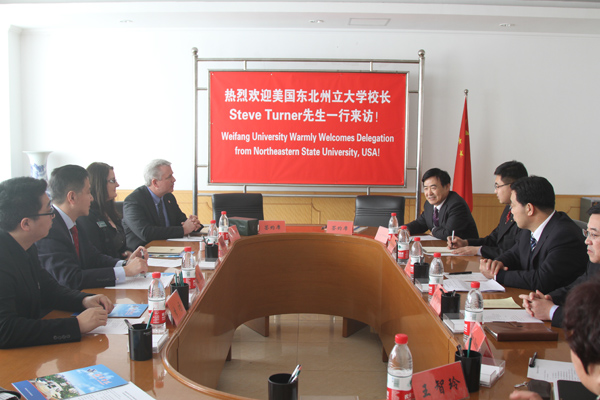 王守伦代表学校对斯蒂夫·唐纳先生的来访表示欢迎,并向来宾介绍了我校的基本情况及对外合作办学等相关情况。双方就今后合作的相关事项进行了交流,并签署了《中国潍坊学院与美国东北州立大学学分互认协议》。北海国际学院、外国语学院、国际合作交流处负责同志参加了活动。