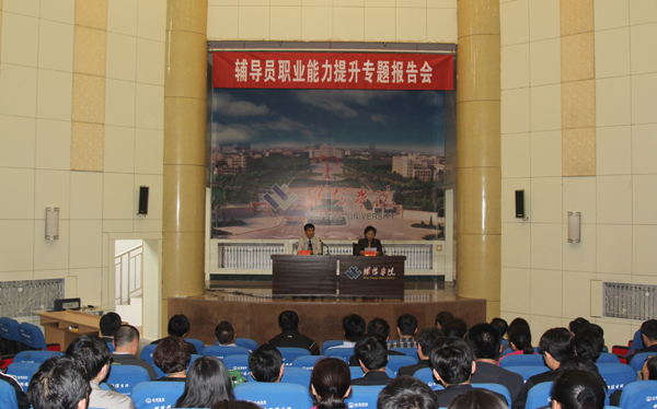 本站讯 为推动实施学校辅导员职业能力提升“五个一工程”,4月9日,辅导员职业能力提升专家报告会举行。学校特邀安徽师范大学朱平教授为大家作了题为《辅导员工作与科研相结合的方式与艺术》的专题报告。