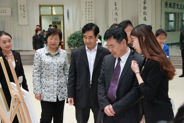 本站讯 4月17日,我校第十四届大学生科技文化艺术开幕式暨“践行核心价值观”大学生书画展举行。院长王守伦、党委副书记牛钟顺、纪委书记马茜华在团委负责同志的陪同下观看了书画展,各团总支书记、学生代表参加了开幕式活动。