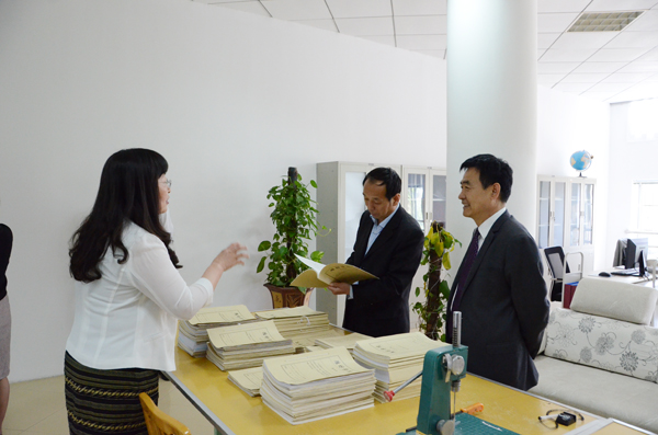 本站讯 5月15日,我校档案馆新库房正式启用。院长王守伦、副院长丁子信到档案馆调研工作。