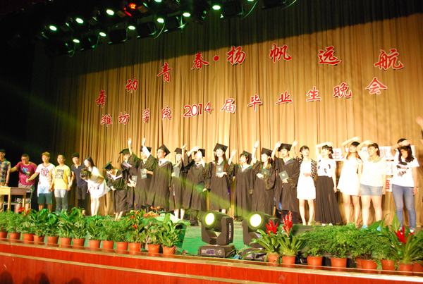 本站讯 6月18日晚,“舞动青春·扬帆远航”2014届毕业生晚会举行。学校领导辛丕宏、王守伦,牛钟顺、冯滨鲁、王清明、丁子信、马茜华、朱猷武、赵光强和千余名学生一起观看了晚会。晚会以“舞动青春”、“梦想绽放”、“扬帆远航”三个篇章,表达了即将毕业的学子对母校的感恩怀念与对未来的憧憬。整场晚会高潮迭起,许多毕业生在观看节目时触景生情,留下惜别的眼泪。“这场晚会勾起了我这四年的所有回忆,想起了相处四年的老师、同学,现在的我只想说感谢,感谢这四年母校给我的力量与信念,感谢老师和同学给我的关怀与温暖,感谢青春给我的记忆与依恋。”外国语学院大四学生褚宏川说。