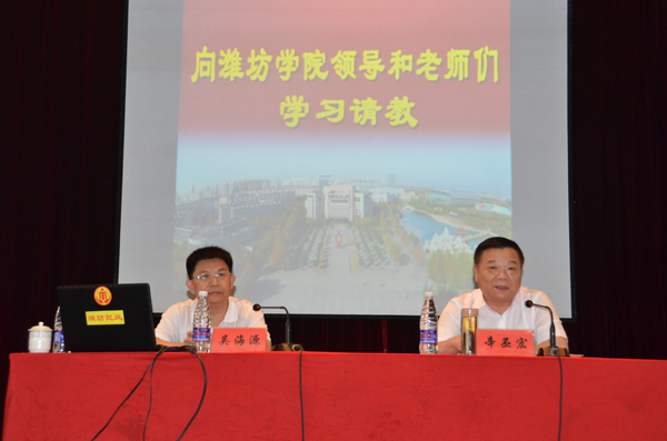 本站讯 6月19日,我校举行党委中心组集体学习报告会,邀请山东省第十次党代会代表,潍坊市民政局党委书记、局长吴海源来校作了题为《发挥民政职能作用解决民生落实民权维护民利》的报告。报告会由党委书记辛丕宏主持,学校领导王守伦、牛钟顺,冯滨鲁、王清明、丁子信,全体处级干部、正高级职称人员、市级以上党代表、人大代表、政协委员、民主党派负责人、二级学院两办主任、管理、教辅部门正科级干部参加了报告会。