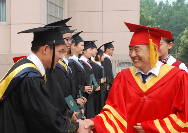 本站讯 6月26日,在庄严雄壮的国歌声中,我校2014届毕业生毕业典礼及学位授予仪式拉开帷幕,6196名毕业生将惜别母校,踏上人生新的征程。学校领导辛丕宏、王守伦、牛钟顺、冯滨鲁、王清明、丁子信、马茜华、朱猷武、赵光强出席典礼。院长王守伦讲话,副院长冯滨鲁主持典礼。各单位、各部门负责同志、部分教师代表和毕业生参加了典礼。