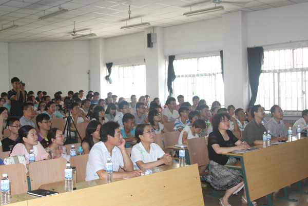 巩志忠教授的报告从脱落酸(ABA)的发现,ABA的合成、代谢和转运,ABA的感受和信号传递,ABA信号途径的转录调控,ABA调控气孔运动,ABA调控根的生长以及基因工程提高植物抗旱性等七个方面详细阐述了植物抗旱胁迫的分子机理。巩志忠教授还结合自己多年的求学科研经历,勉励同学们勤奋学习,珍惜求学机会,做一个对社会有用的人。