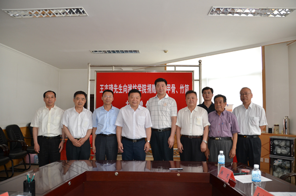 本站讯 7月3日,王志琦先生向学校捐赠首批甲骨、竹简仪式隆重举行。王志琦先生现为学校文博研究院院长(特聘),这次他向学校捐赠的个人收藏有商代中后期的甲骨36版和战国中晚期的竹简1011枚。党委书记辛丕宏、王志琦在仪式上先后讲话。院长王守伦与王志琦进行了签约和交接。