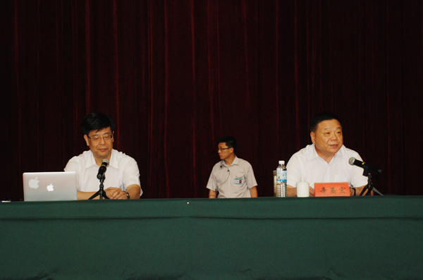 本站讯 在科研大会系列活动周期间,7月4日,山东省科技厅副厅长、青岛国家海洋科学研究中心主任李乃胜“聚焦蓝色跨越,建设海洋强国”报告会在学校体育馆举行。报告会由党委书记辛丕宏主持。副院长丁子信、赵光强与近5000名师生代表一起聆听了报告。