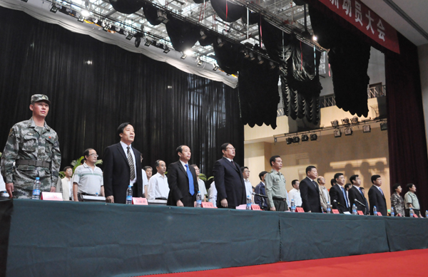 本站讯 9月17日上午,在雄壮的国歌声中,我校2014级新生开学典礼暨军训动员大会在体育馆拉开帷幕。学校党委书记辛丕宏根据教官报告,下达大会开始指令。院长王守伦致辞并向军训团授旗。学校纪委书记马茜华宣读《关于成立2014级新生军训团的决定》。学校领导牛钟顺、王清明、丁子信、朱猷武,驻潍某部政治部副主任符杰少校出席大会并在主席台就座。开学典礼由副院长冯滨鲁主持。施训官兵、各单位负责人、教师代表、在校生代表以及2014级全体新生参加了典礼。
