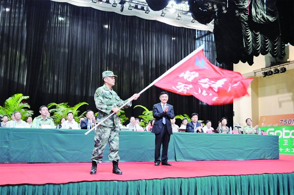 典礼上,军训团团长杨西法少校传达军训计划,教师代表曲振国、在校生代表高倩玥、教官代表秦智涛、新生代表刘雯菁分别作了精彩发言。