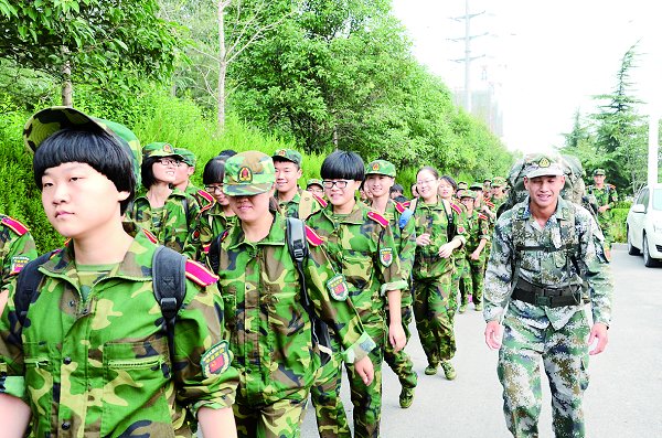 又讯 9月24日上午7:30,我校2014级军训新生野外徒步拉练从弘德书院准时出发。4个营,19个连,5400余名新生进行了行程12.5公里的野外拉练。