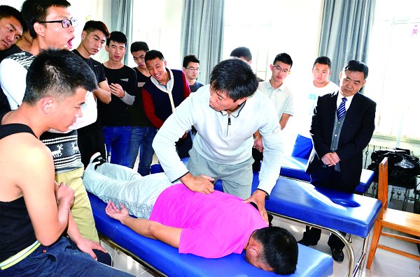 本站讯 10月27日,院长王守伦走进体育学院,与该院2011级学生一起听了李瑞军老师的《推拿与按摩》课。李瑞军老师介绍说,很多学生喜欢这种理论与实践结合性强的课,他的课堂常常有其他学院的学生。王守伦说,我们的课堂对同学们都是开放的。他鼓励同学们要多走进自己感兴趣的课堂,为自身修养的提升打好基础。