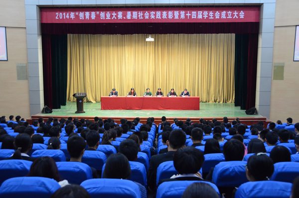 本站讯 11月5日,2014年“创青春”创业大赛、暑期社会实践表彰暨第十四届学生会成立大会召开。纪委书记马茜华出席大会。学校团学“两委”委员,各团总支书记,校学生会骨干成员,各学院、书院学生分会代表参加了大会。
