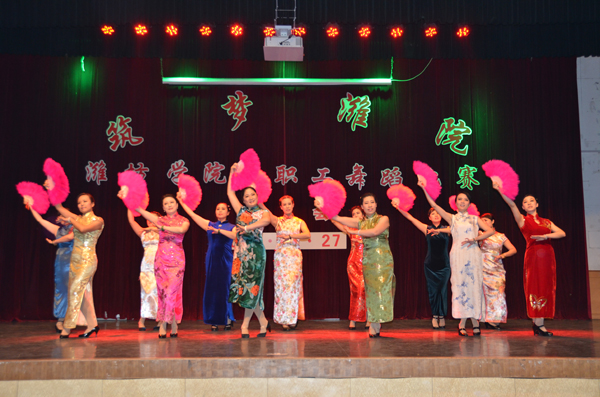 本站讯 11月27日,“筑梦潍院”教职工舞蹈比赛在闻韶楼报告厅举行。来自各分会的21支代表队同场竞技。