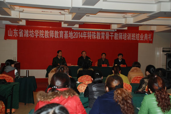 本站讯 12月4日,我校教师教育基地承办的山东省特殊教育骨干教师培训班结业典礼举行。副院长冯滨鲁出席典礼,并与幼教特教师范学院负责同志共同为学员代表颁发了结业证书。教务处、幼教特教师范学院负责同志,培训班班主任和全体学员参加了典礼。
