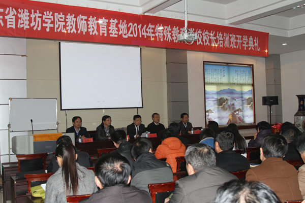本站讯 12月9日,全省特殊教育学校校长培训班在安顺校区举行开学典礼。院长王守伦,潍坊市高等教育办公室副主任曹红旗出席典礼并讲话。我校有关部门负责同志参加了活动。