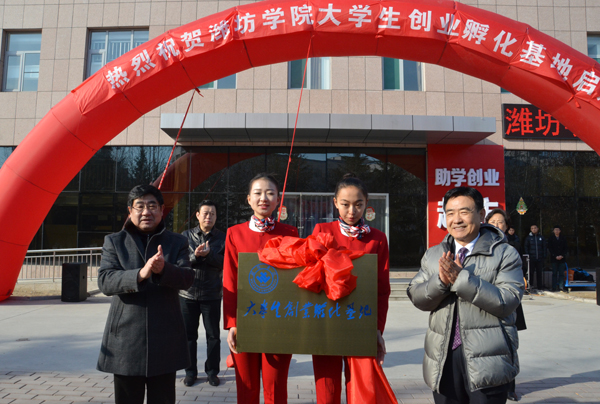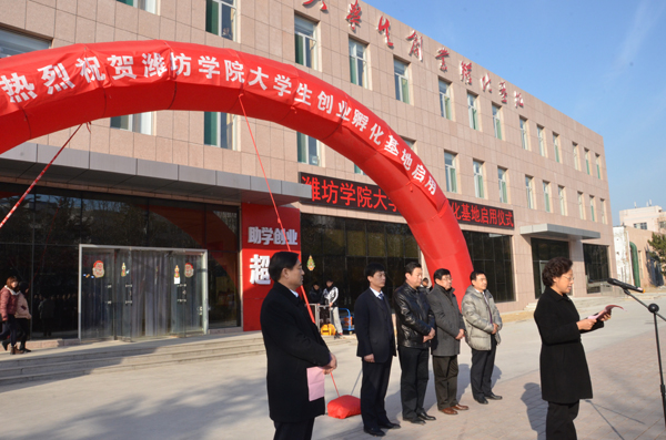 本站讯 12月26日,大学生创业孵化基地启用仪式在我校隆重举行。校党委书记孙文亮、院长王守伦、纪委书记马茜华、潍坊市大中专毕业生就业指导中心主任王术平、济南尧智东方商贸发展有限公司总经理曹术胜出席启用仪式。
