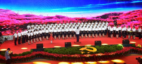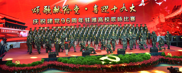 本网讯 6月30日,由市委高校工委主办的“颂歌献给党 喜迎十九大”暨庆祝建党96周年驻潍高校歌咏比赛,在我校体育馆举行。市领导苏立科、林红玉、张新强,学校党委书记孙文亮、校长冯滨鲁与广大师生欢聚一堂,在激昂澎湃的歌声中喜迎党的第96个生日到来。