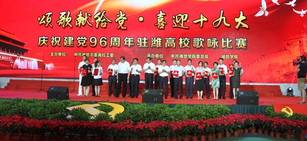 经过激烈的角逐,我校获得歌咏比赛特等奖;潍坊医学院、潍坊科技学院、潍坊工程职业学院获得一等奖。