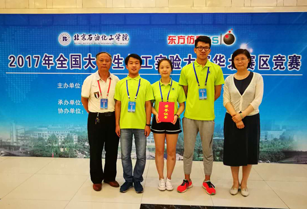 本网讯 7月8日—9日,2017年全国大学生化工实验大赛华北赛区竞赛在北京石油化工学院举行,来自清华大学、天津大学、中国石油大学(北京)、北京化工大学等35所高校的105位选手同台竞技。我校化学化工与环境工程学院2014级化学工程与工艺专业的王银中、丁一飞、沈宏宇同学组成的“鸢飞梦起队”,在张运臣、曹淑华等老师的指导下代表我校首次参加此类国家级竞赛,经过化工原理理论考试、验证型化工原理和工程型化工单元虚拟仿真实验操作三个部分的竞赛,在我校虚拟仿真条件空白的情况下,代表队以扎实的专业功底和较强的动手能力荣获团体二等奖。