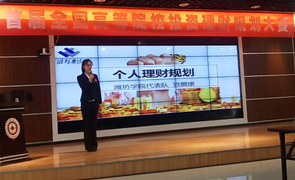 本网讯 11月25日,首届全国高等院校投资理财规划大赛在贵州财经大学举行。本次大赛共吸引了来自齐鲁工业大学、广东财经大学、河北大学、西南政法大学等全国38所本科院校的选手参与。经过紧张激烈的角逐,我校经济管理学院2015级经济与金融专业的王董业、宫麒康、郝金睿、刘卯四名同学荣获团体一等奖,同时获得个人一等奖一项,个人二等奖一项,个人三等奖两项。