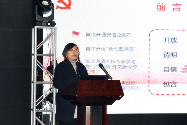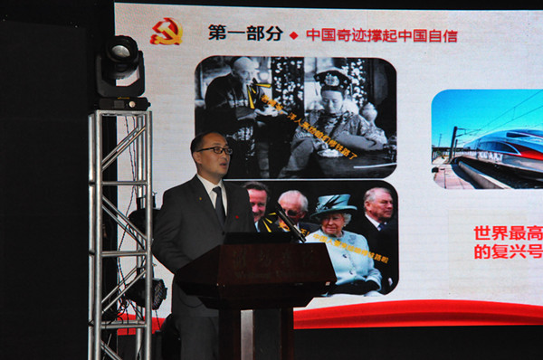 高伟从社会主义新时代赋予的“获得感”引导大家思考,在新时代,青年应该如何找到自己的“存在感”,如何做到“有理想、有本领、有担当”;殷子惠从发展新征程和经济新突破两个方面,谈到如何深入理解建设社会主义现代化强国的目标任务以及如何不断深化对建设现代化经济体系的科学把握。李永卫从中国特色社会主义政治制度和全面从严治党两个方面分析了国家治理新境界和党建新篇章;郭冬梅从追溯文化之源、坚定文化自信、锻铸文化自觉三个方面深入阐述了文化自信这个核心主题;姜晓琳从十九大报告中对青年提出的殷切期待入手,向同学们发出勇挑时代重任、勇于创新创造的倡议。老师们的宣讲既有丰富的理论知识,又有深刻的实践感受,使与会师生受益良多。