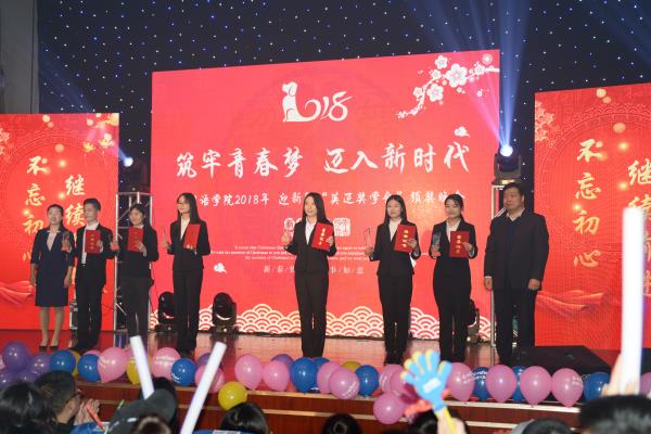 此次晚会也是由潍坊学院校友、外国语学院毕业生刘海云女士发起的“英迈儿童英语奖学金”首发仪式。晚会上表彰了外国语学院10名品学兼优的优秀学子。