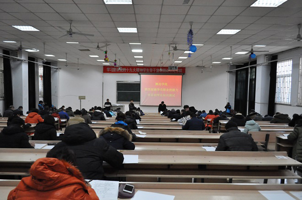 本网讯 12月21日,为深入贯彻党的十九大精神,推动我校辅导员职业化、专业化发展,提升辅导员的职业技能和工作水平,我校第四届辅导员职业技能大赛基础理论知识测试暨学习十九大知识测试在知新楼举行,标志着我校第四届辅导员职业技能大赛大幕拉开。